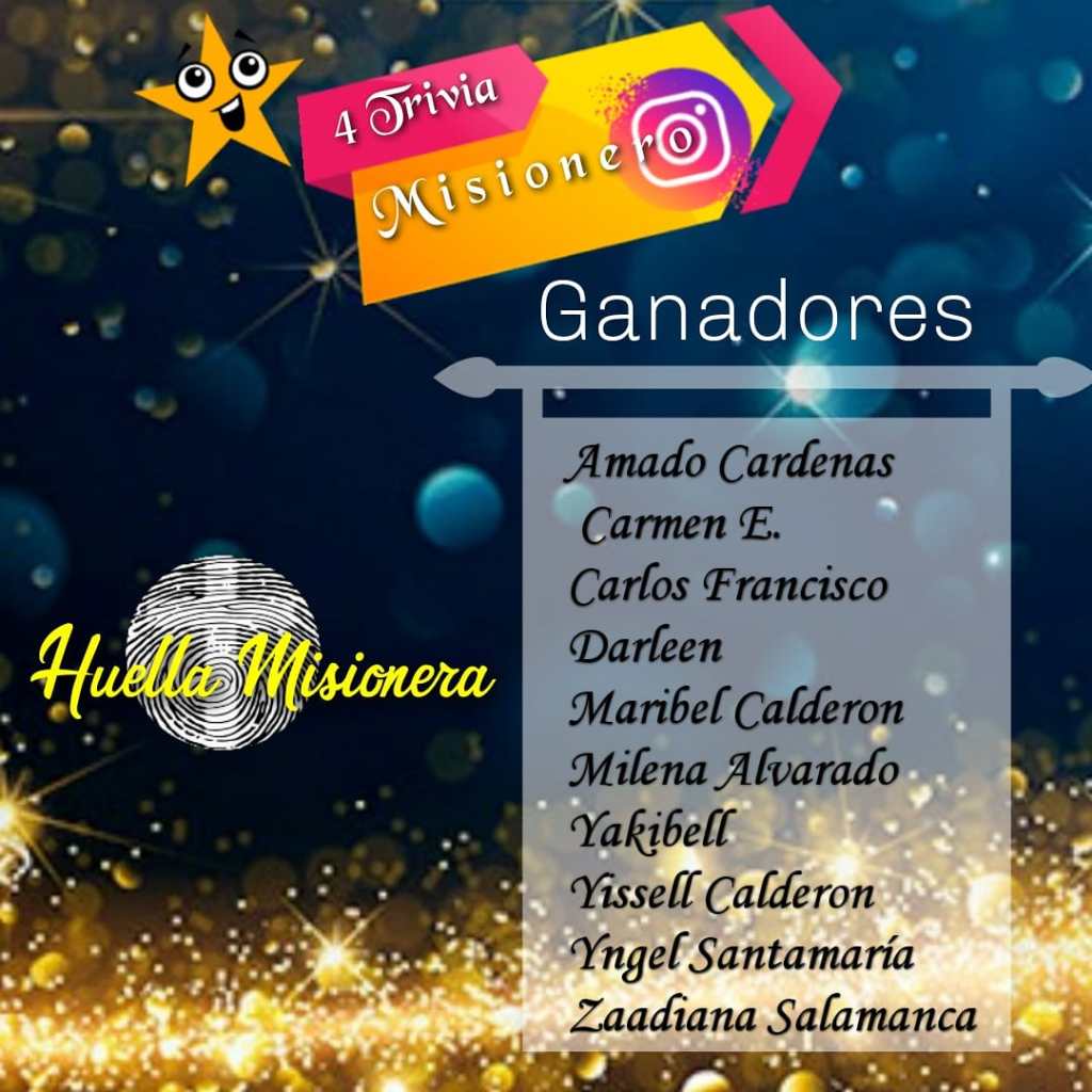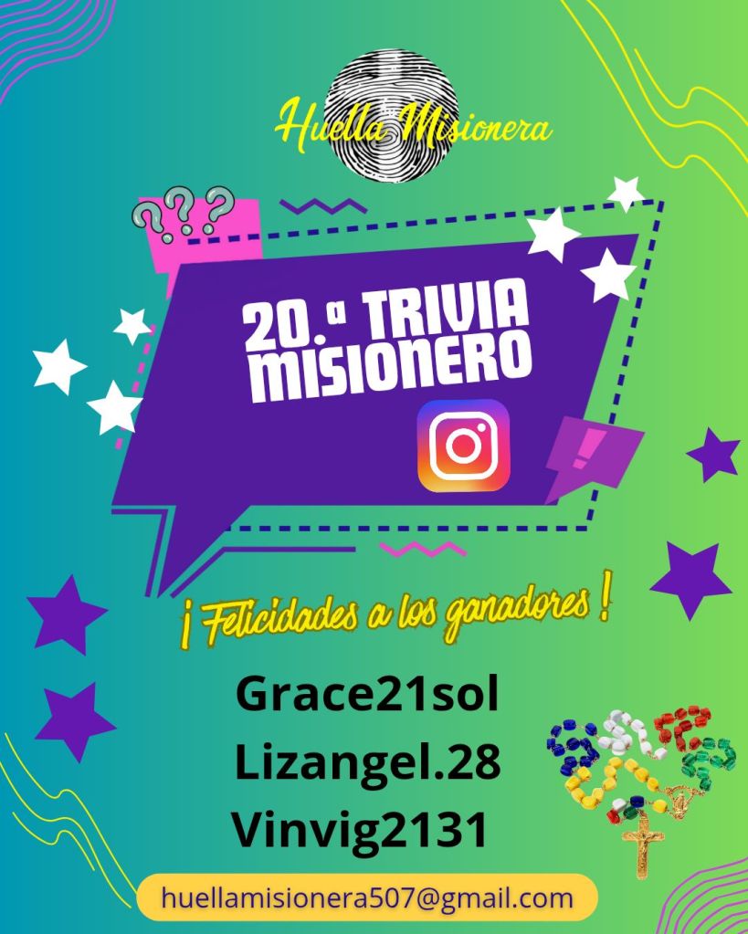 Felicitamos a nuestros hermanos ganadores de esta 20ª Edición del Trivia Misionero. A todos los participantes gracias por su apoyo próximamente estaremos anunciando la entrega de camandulas.